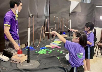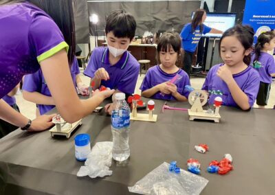 The children learned about the process of growing mushrooms. They also joined fun workshops such as chocolate fondue making, the electric maze game, and online business activities.