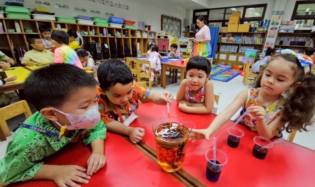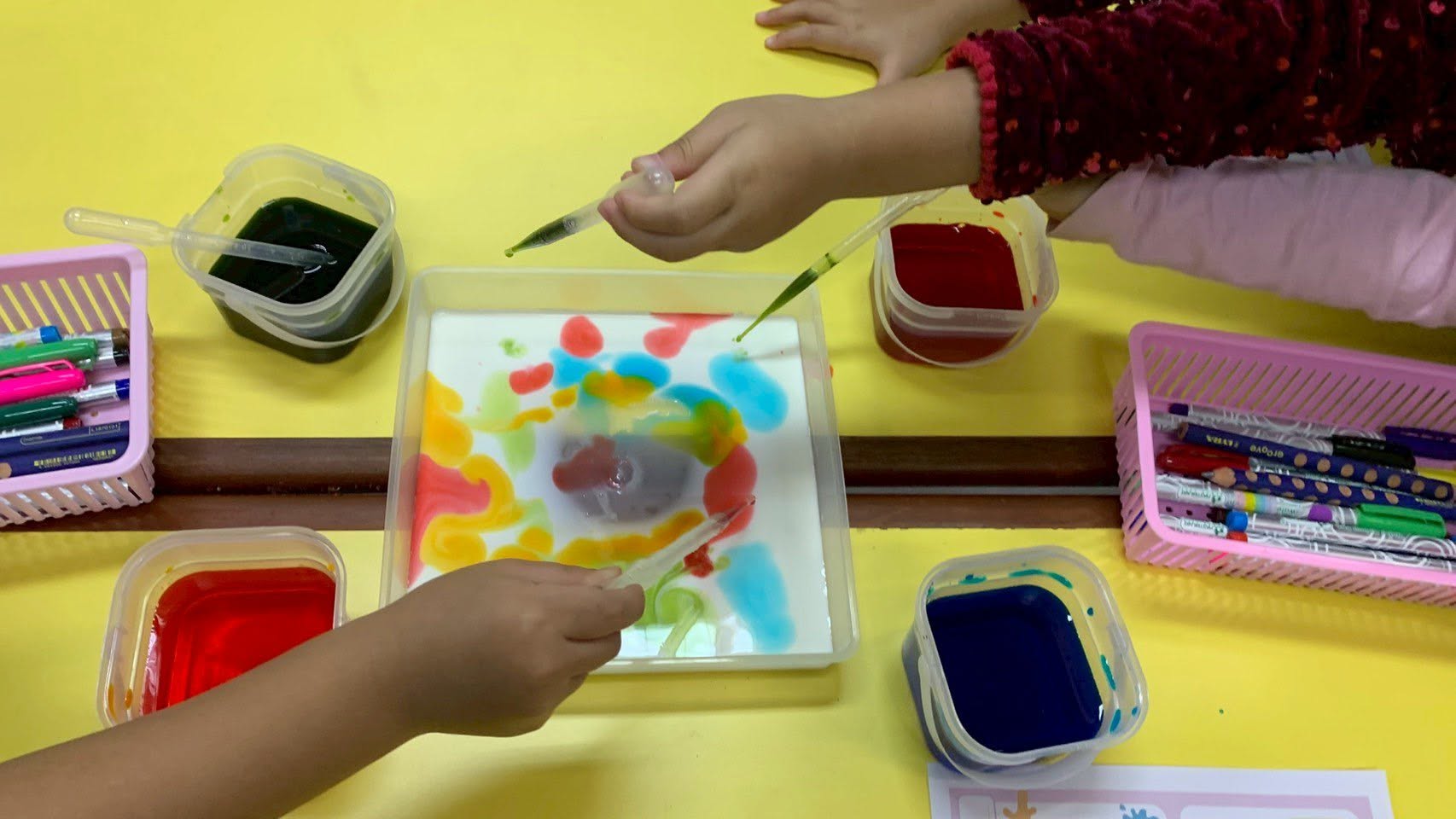 โ Oil, water, and food coloring showed us how colors behave differently in each liquid.